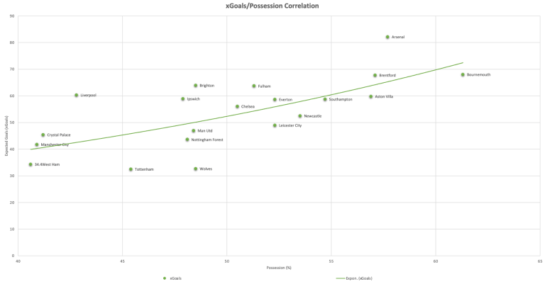 Expected goals (xG) has come around only in the last few years, which assigns a probability, between 0 and 1, to every shot, indicating how likely it is to be a goal based on factors like distance, angle, and whether it was a big chance or a one-on-one situation. Rather than just analysing the amount of goals Liverpool scored, using xG takes out the striker error element. A combination of xG and possession highlights how effective a team is, painting a picture of what makes a team click.