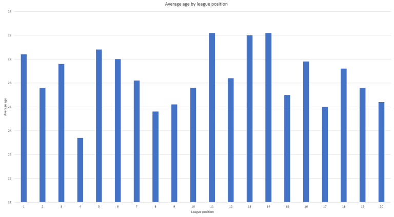It is often believed that experience is the key to success in football, with data from the CIES Sports Laboratory finding the median age of champions across Europe’s top five leagues between 2009 and 2017 was approximately 26.5 years old. During last season, Liverpool had the 5th oldest squad in the Premier League with an average age of 27.2. Despite not having the outright oldest squad in the league, it does show that there is a correlation between experience and success.